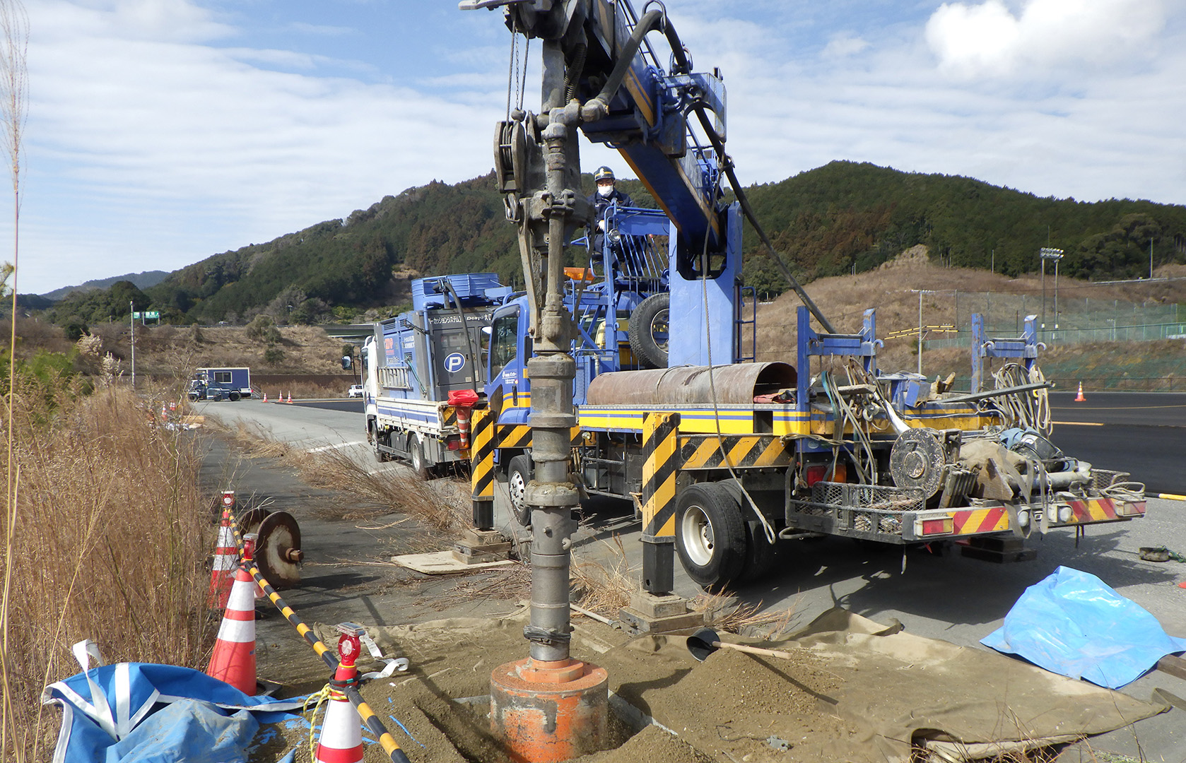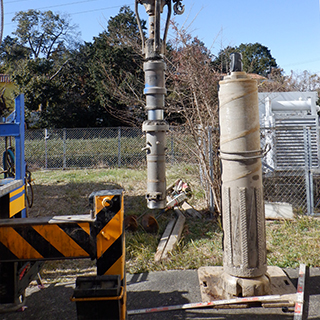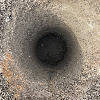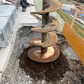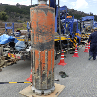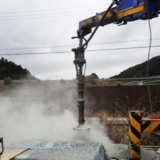 『ダウンザホールハンマ工法』とは、玉石や転石・硬質地盤を破砕・掘削・穿孔することで基礎杭を打設するための孔をつくる工法です。